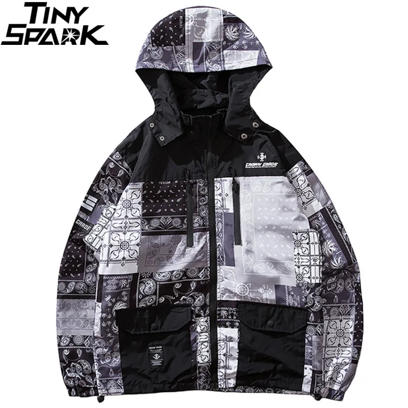 HOT SALE Harajuku Jacket Retro Pattern Men Hip Hop Streetwear Hooded Jacket Windbreaker Spring 2019 Color Bl